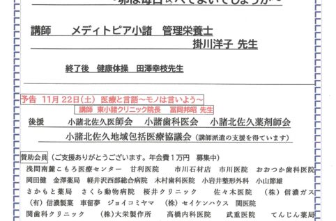 10/25開催 健康教室You・愛サロン主催「健康講話」のお知らせ