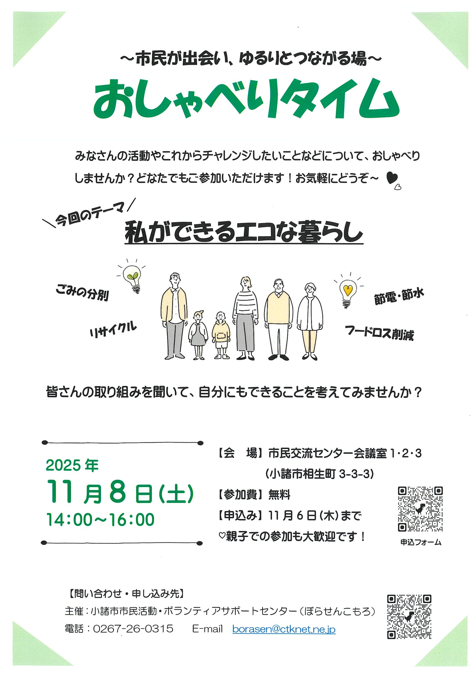 11/8開催「おしゃべりタイム~市民が出会い・ゆるりとつながる場~」参加者募集!