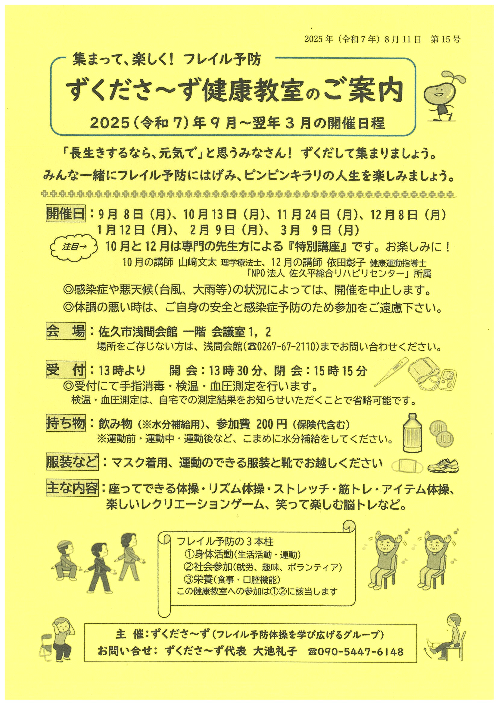 ずくださ~ずは、フレイル予防体操を学び広げるグループです