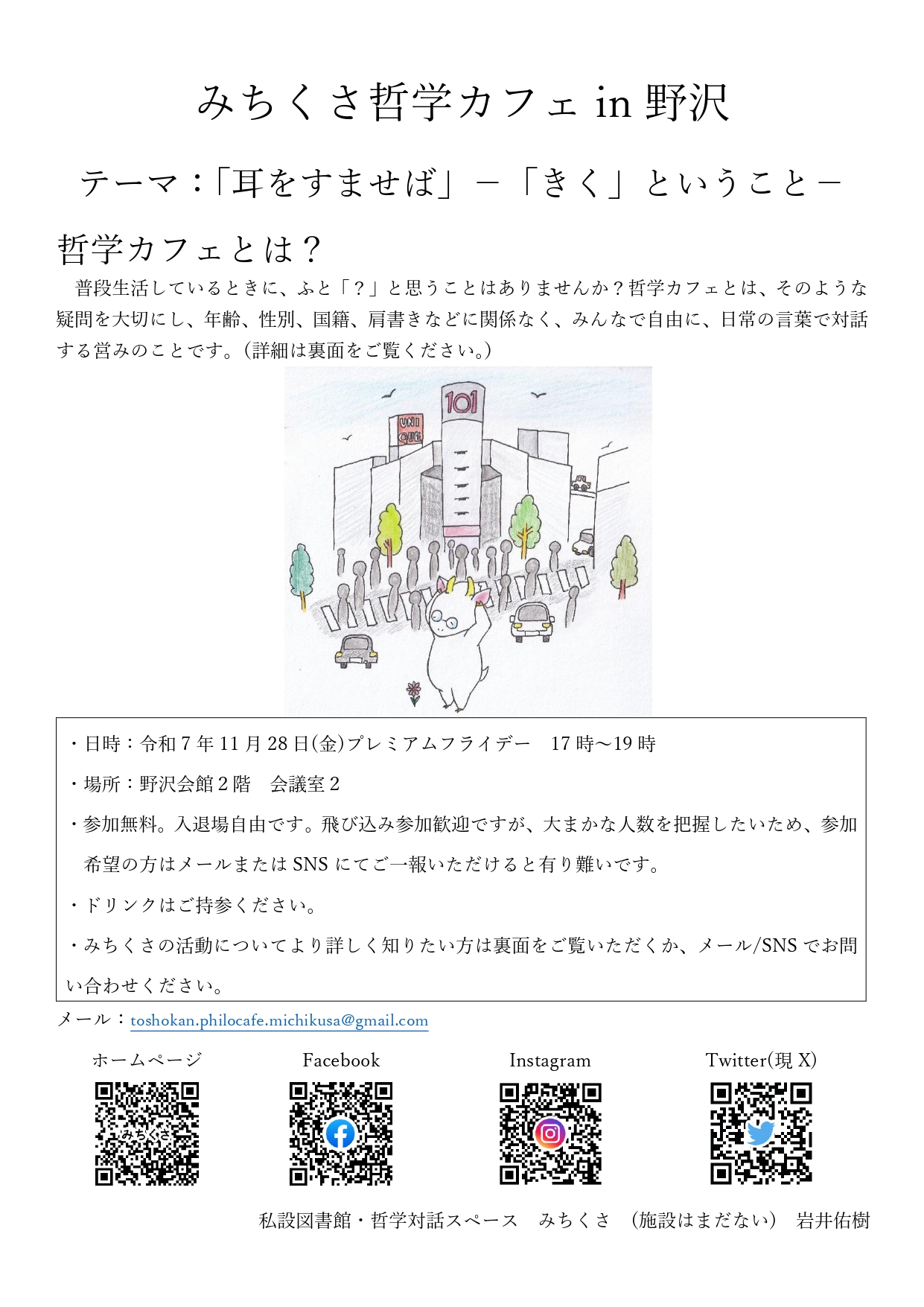 主催:私設図書館・哲学対話スペース“みちくさ”(施設はまだない)