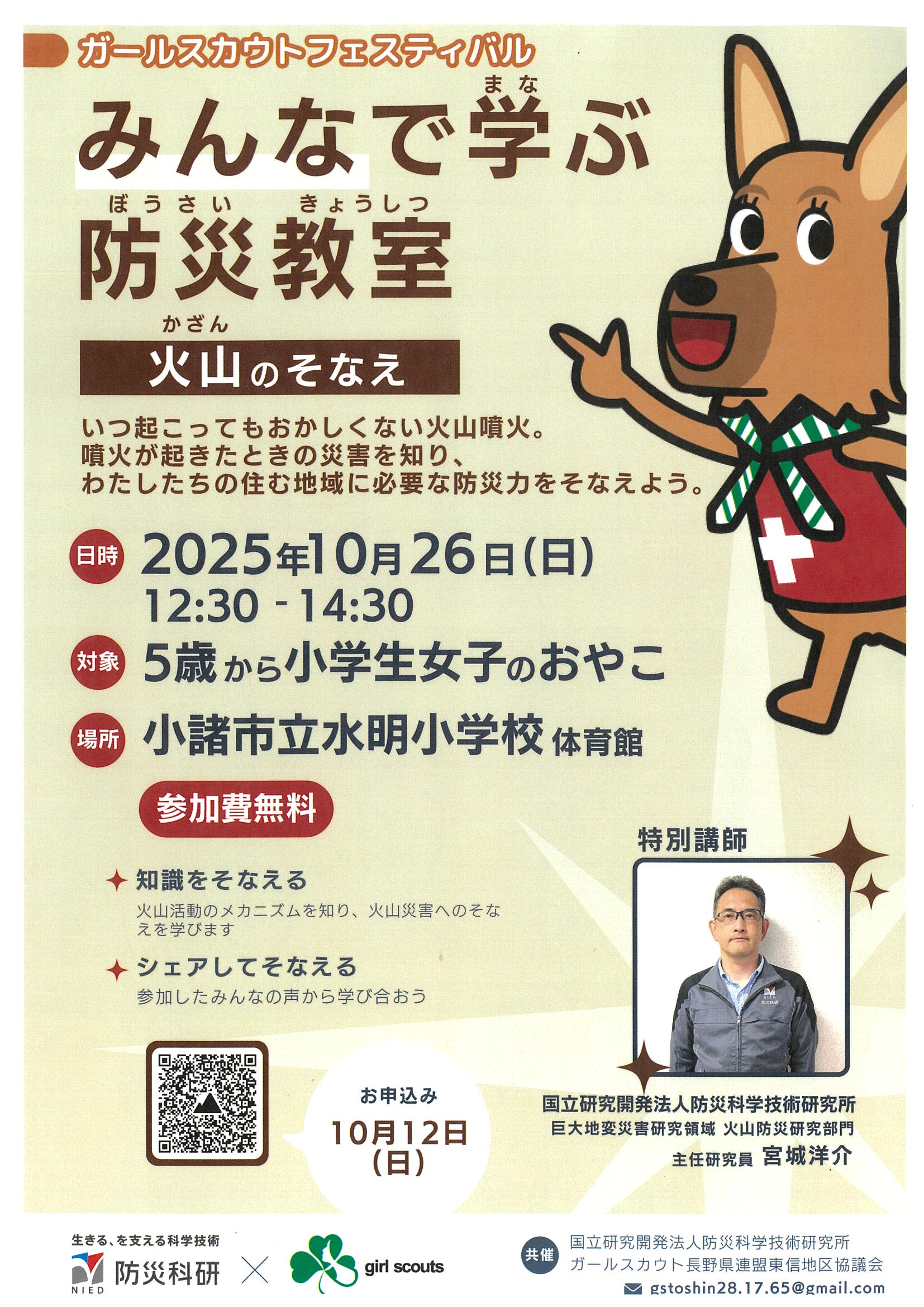いつ起こってもおかしくない火山噴火。噴火が起きたときの災害を知り、わたしたちの住む地域に必要な防災力をそなえよう!防災のことやガールスカウトの活動に興味がある方、ご参加お待ちしています♪