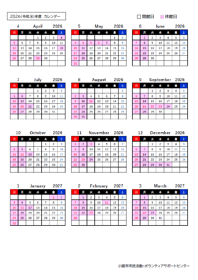 このたび、より多くの皆さまにご利用いただきやすい環境を整えるため、2026年5月1日よりセンターの開館日および休館日を変更することとなりました。変更後については下記のとおりです。