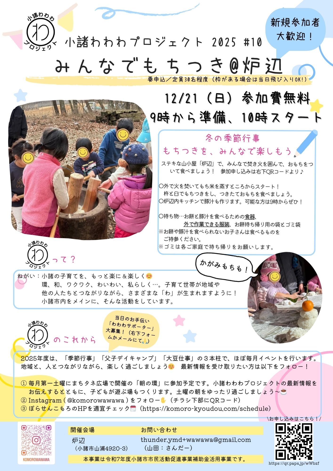 12/21開催 小諸わわわプロジェクト「みんなでもちつき@炉辺」のお知らせ