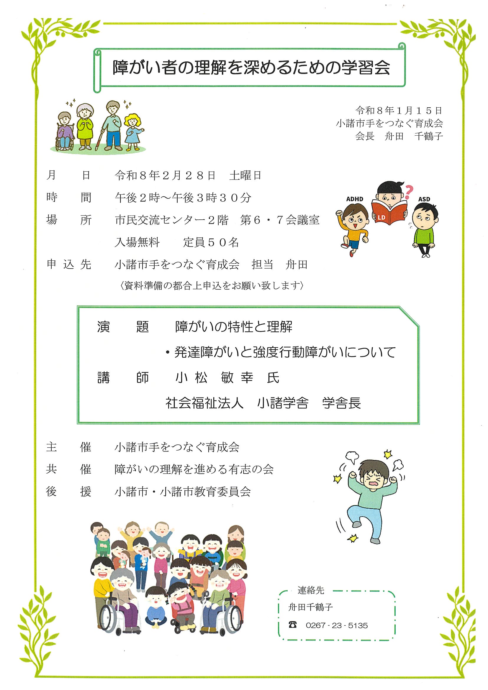 申込先:小諸市手をつなぐ育成会 担当:舟田さん✆0267-23-5135