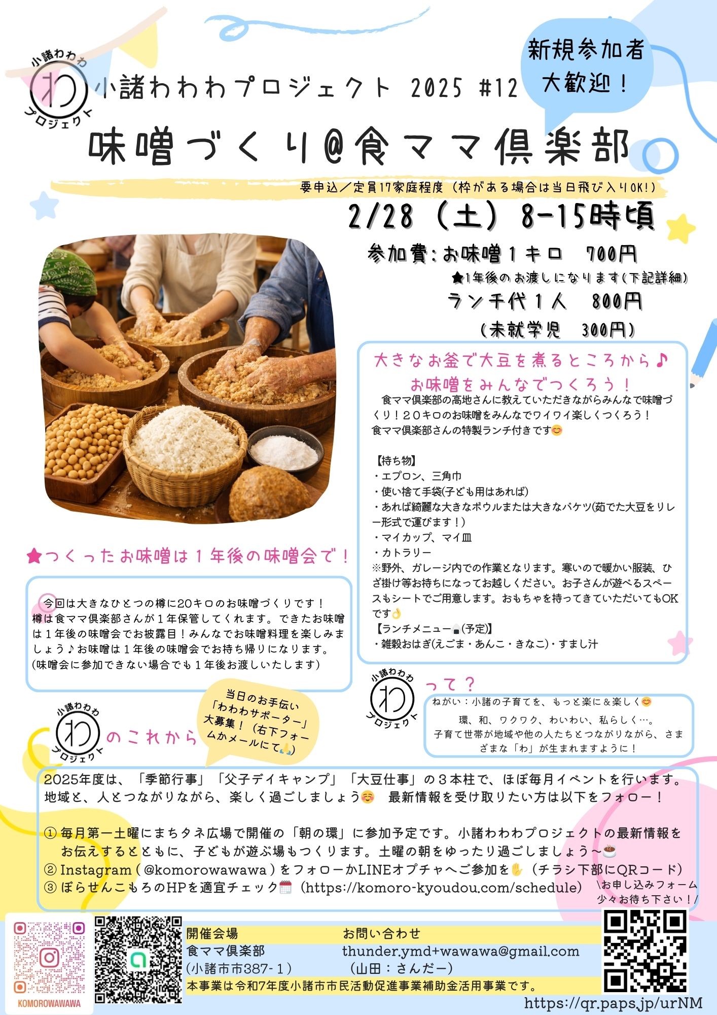 2/28開催 小諸わわわプロジェクト「味噌づくり@食ママ倶楽部」のお知らせ