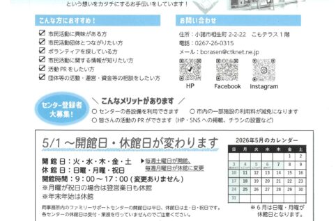 小諸市市民活動・ボランティアサポートセンター登録申請書