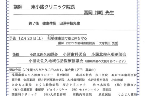 11/22開催 健康教室You・愛サロン主催「健康講話」のお知らせ