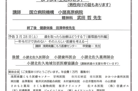 2/28開催 健康教室You・愛サロン主催「健康講話」のお知らせ