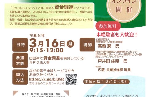 NPO法人運営セミナー「ファンドレイジング講座」のお知らせ(主催:長野県)