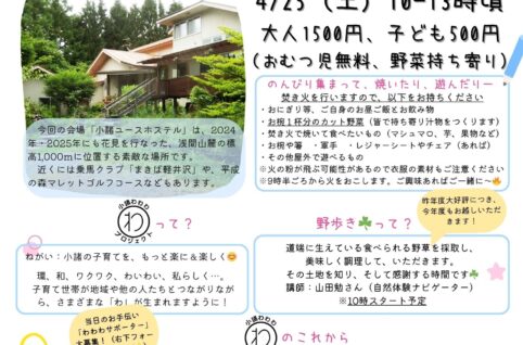 4/25開催 小諸わわわプロジェクト「花見&野歩き@小諸ユースホステル」のお知らせ