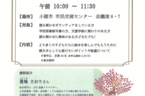 11/16開催「読み聞かせボランティア講習会」のお知らせ