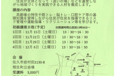 「介護予防B型住民指導士養成講座(初級)」令和7年度受講生募集!