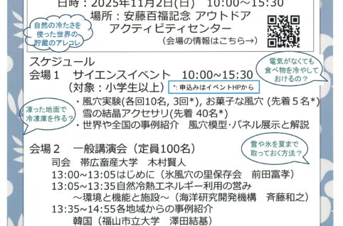 11/2開催 サイエンス・イベント/⼀般講演 IN ⼩諸「世界の⾵⽳・氷室・地下貯蔵庫」のお知らせ